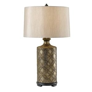 Product Description : 9906BUSB Features: -One light table lamp.-Champagne silk fabric shade.-UL listed for dry location.-cUL listed for dry location. Construction: -Metal construction. Color/Finish: -Burnished silver with black finish. Specifications: -120 Volts.-Accommodates (1) 150W medium base bulb (not included). Dimensions: -Shade base dimension: 17'' W.-Shade dimension: 17'' H x 10.5'' W x 16'' D.-Chain length: 31''.-Wire length: 72''.-Overall dimensions: 31'' H x 17'' W. Collection: -Hand Painted Porcelain collection.